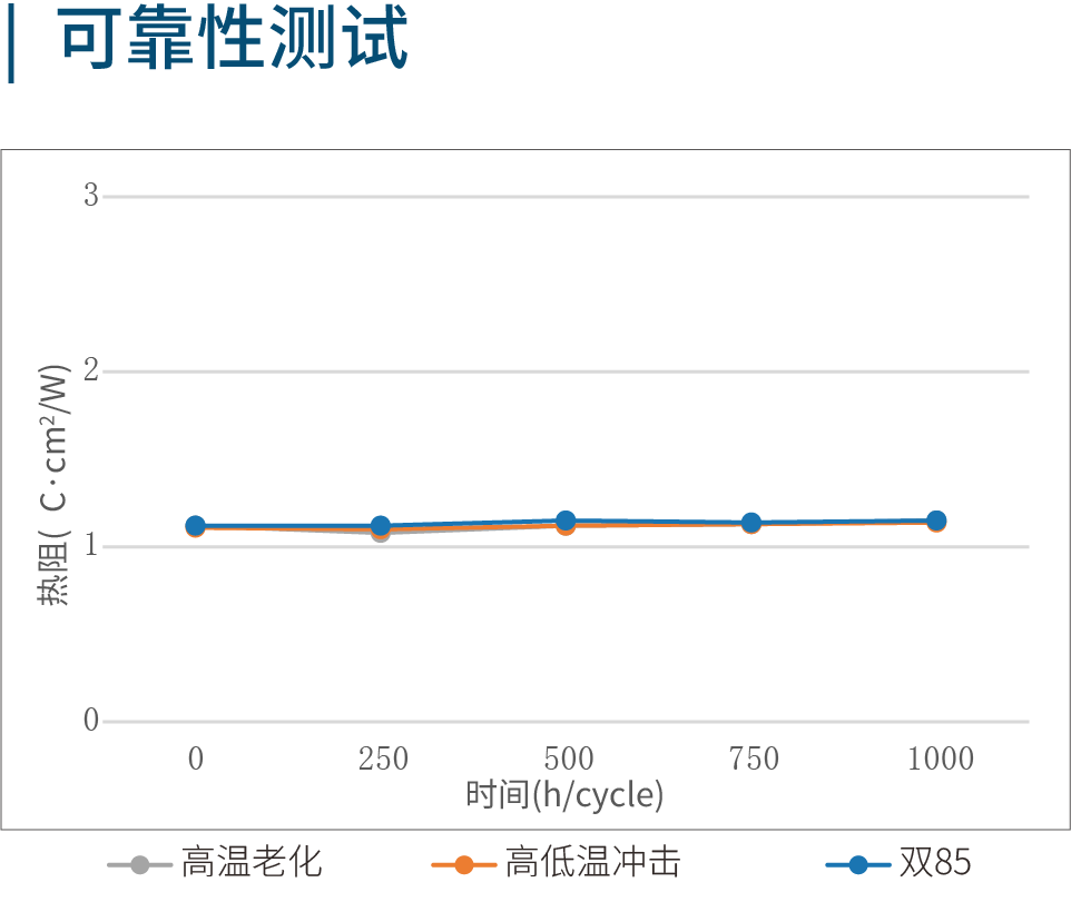 The thermal resistance performance of Tegino Fill-Pad US1400 remained stable throughout the reliability test process. Under the conditions of continuous high temperature, high and low temperature shock, and double 85 tests, it did not fail due to fluctuations in pressure and temperature, and always maintained stable thermal conductivity.
