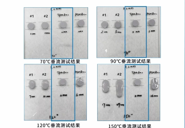 The Fill-TPM800 maintained a stable shape without sagging during the testing process. Even in the more stringent high-temperature durability test environment, it still demonstrated excellent stability and was less likely to encounter problems over long-term use. Its excellent anti-sagging performance can meet the strict requirements for material stability in fields such as automotive electronics.